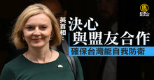 2022-09-26 21:34:45新聞首先來關心,美國總統四度表態軍事防衛台灣後,英國首相特拉斯25日表示,有決心與盟友合作,確保台灣能自我防衛,這非常非常重要。她說,自由世界在應對獨裁政權的挑戰方面,做得不夠。