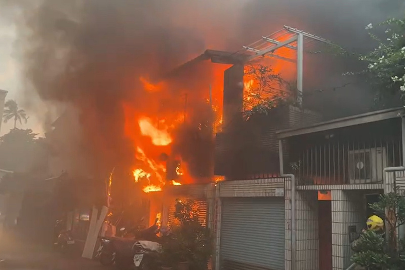 台南市永康區復國一路一處透天式住宅11日傍晚發生火災,消防人員獲報到場時發現火場有明火竄出,並有延燒情形,隨即出水灌救;火警造成3人死亡。(圖/讀者提供)