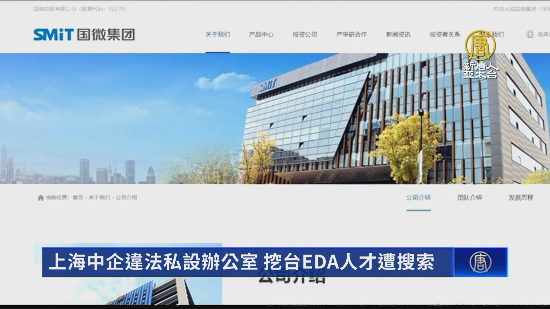 【新唐人亞太台 2022 年 09 月 14 日訊】又有中國公司來台私設辦事處挖角台灣人才!上海國微思爾芯公司,涉嫌從2011年到2020年間,未經許可在台灣新竹縣設立分公司,招募挖角台灣電子設計自動化(EDA)人才,10年來至少30名工程師被挖到中國工作,違反兩岸人民條例,台北地檢署14日指揮調查局搜索3個相關地點,並約談台灣公司負責人陳姓男子到案。
