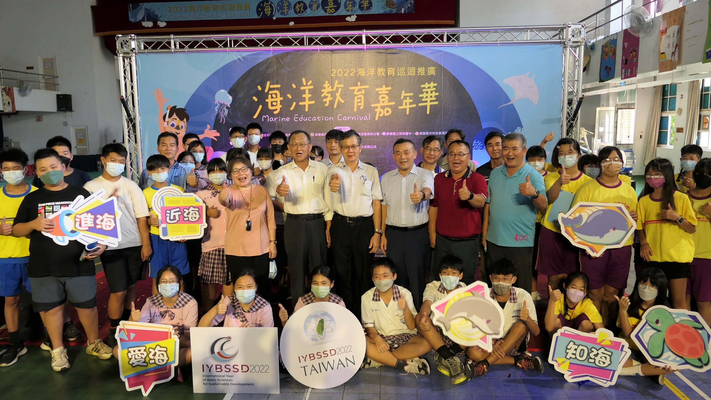 「海洋教育嘉年華」活動於琉球國中體育館進行開幕,由海委會科技文教處處長黃世偉、科工館館長李秀鳳、南服中心副執行長陳文亮及副執行長許乃文、大鵬灣國家風景區管理處東琉站主任蘇瑞芳共同進行啟動儀式。