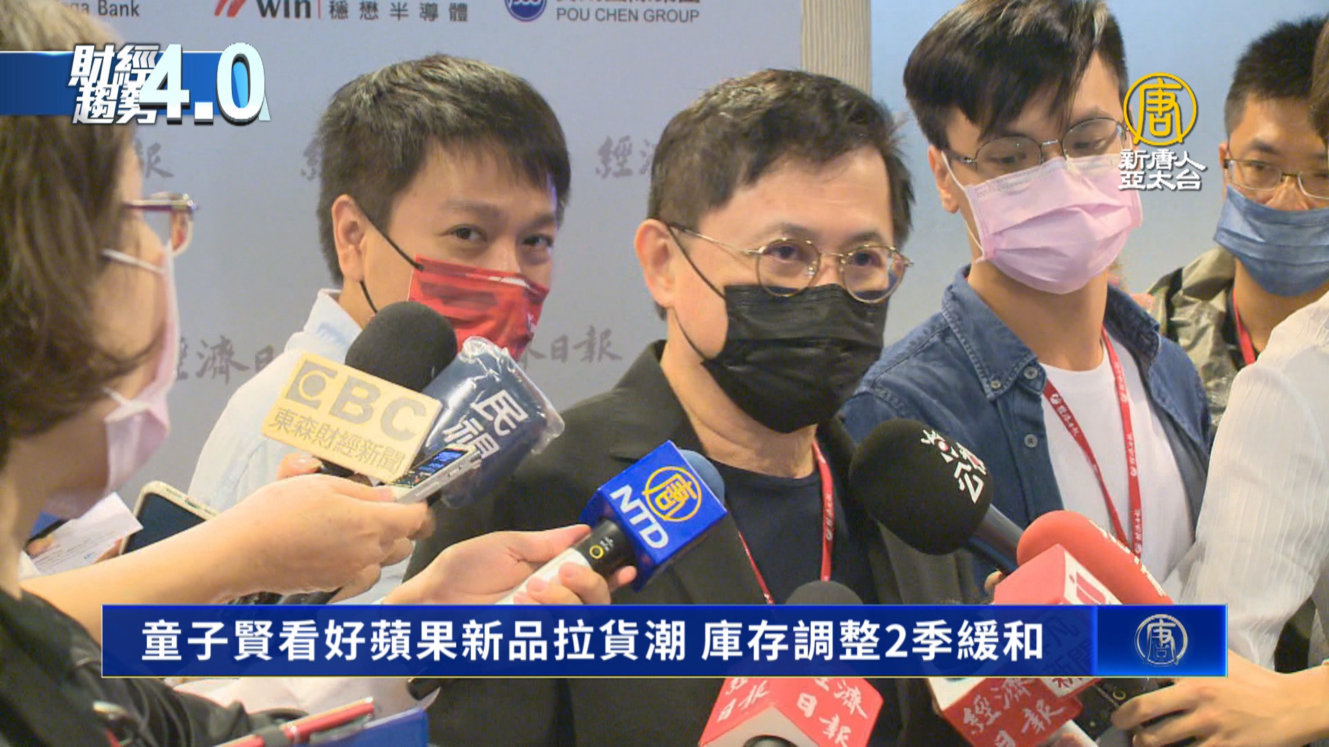 【新唐人亞太台 2022 年 09 月 17 日訊】蘋果新機開賣,蘋概股動向也受到關注,先前外媒報導,半導體景氣出現警訊,台灣電子業,面臨庫存過高問題,組裝代工大廠和碩,董事長童子賢評估,新品可望抵銷負面影響,預估庫存調整的情況,一到兩季就會進行調節。