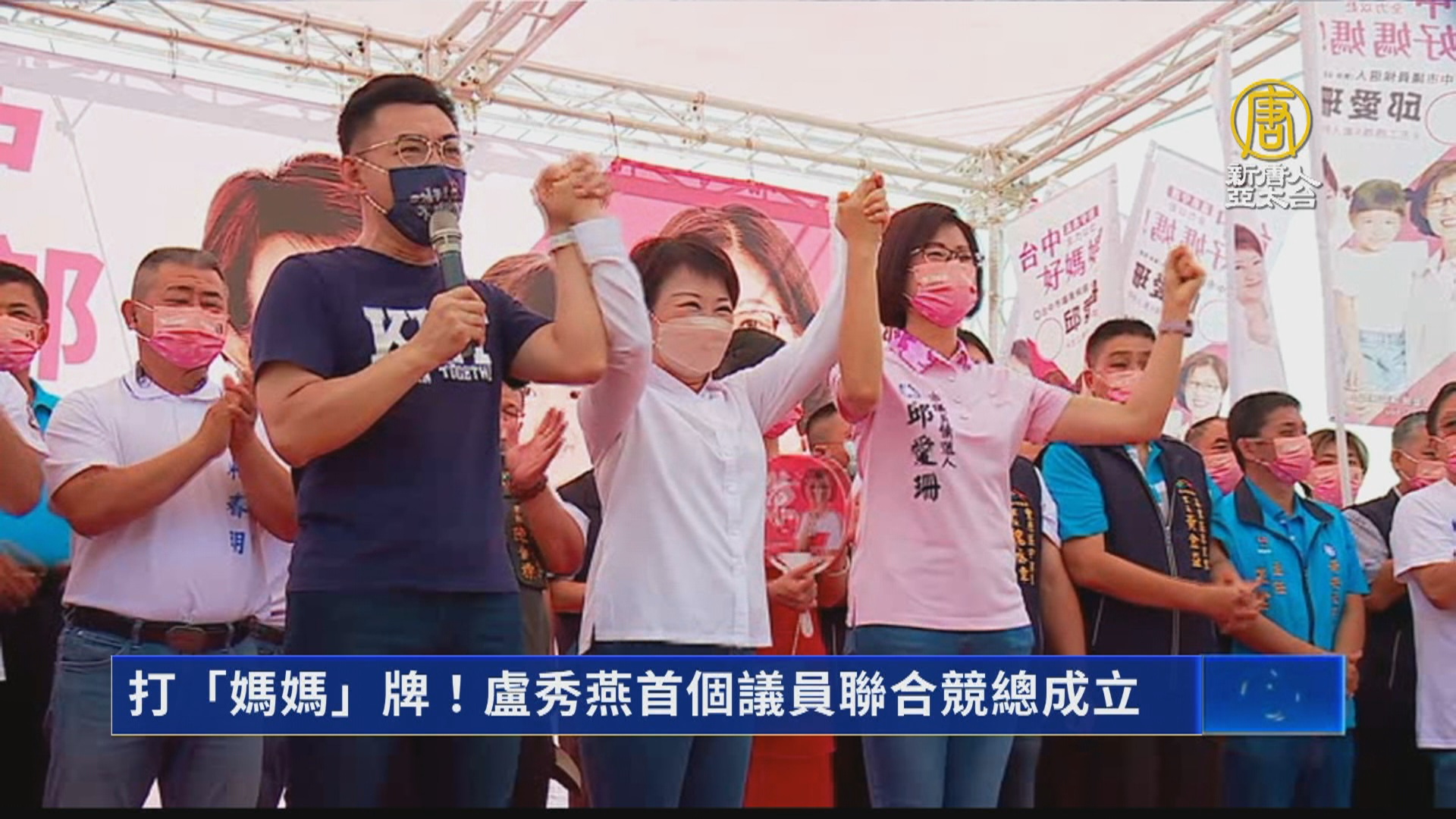 【新唐人亞太台 2022 年 09 月 17 日訊】台中市長盧秀燕爭取連任,這個禮拜(15日)展開首場公開選務行程,今天(17日)也扮演母雞角色,拉抬黨內議員候選人,更打出「媽媽牌」喊話要照顧地方。