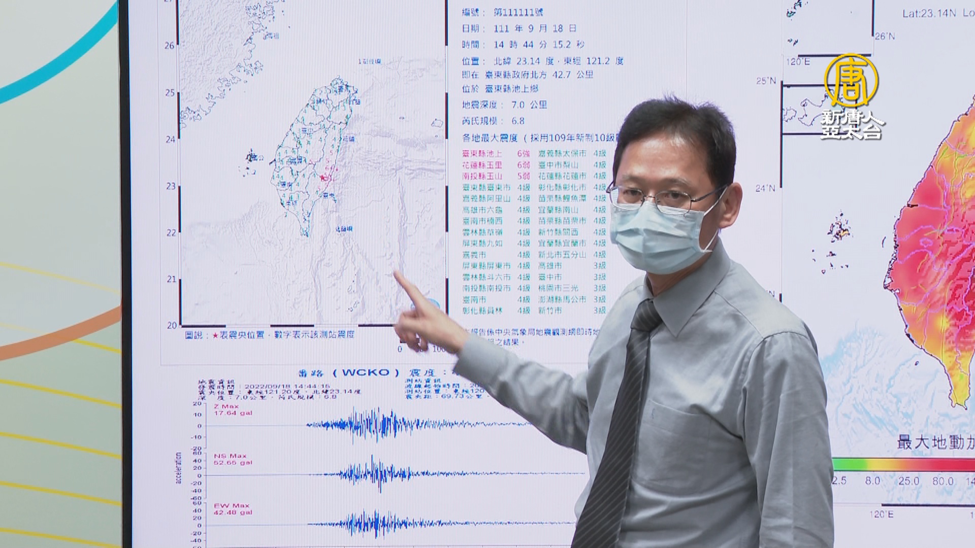 2022-09-19 11:17:54早安新唐人先來關心,台東昨天18日下午發生規模6.8地震,主要災情位於花蓮和台東地區,這是今年第8起規模超過6的地震,氣象局表示,前震超過70起也很少見,不排除未來3天仍有規模5以上的餘震。