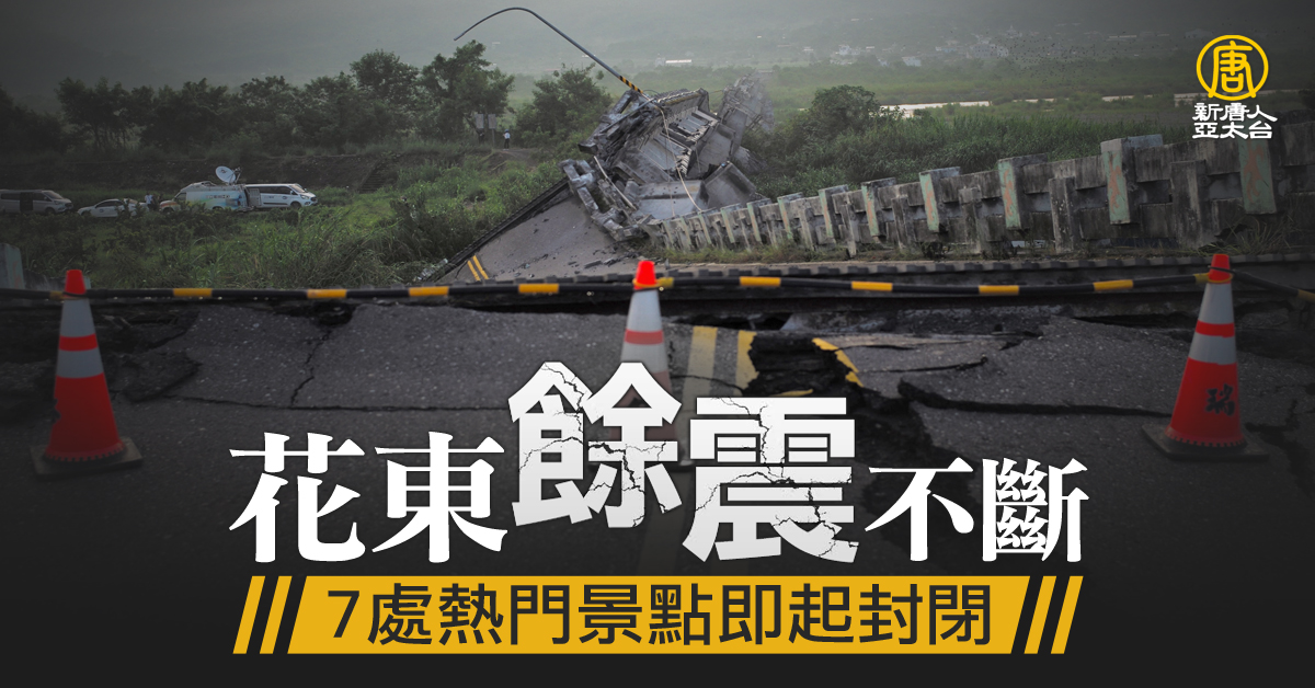 【新唐人亞太台 2022 年 09 月 19 日訊】好,花東地區接連三天強震,從週六晚間開始已發生150次有感地震,交通部觀光局今天宣布所轄花東共7處景點即日起預警性封閉,包括台東縣三仙台遊憩區、八仙洞靈岩洞周邊步道、綠島朝日溫泉往海濱天然池步道及花蓮縣大石鼻山登山步道、泰平山、鹿野高台起飛場及玉富自行車道等,暫無開放時程表。台鐵花蓮到台東因3處橋損比照5/1類火車模式辦理接駁,截至今16時止,共開出類火車115輛、接駁人數3,405人。