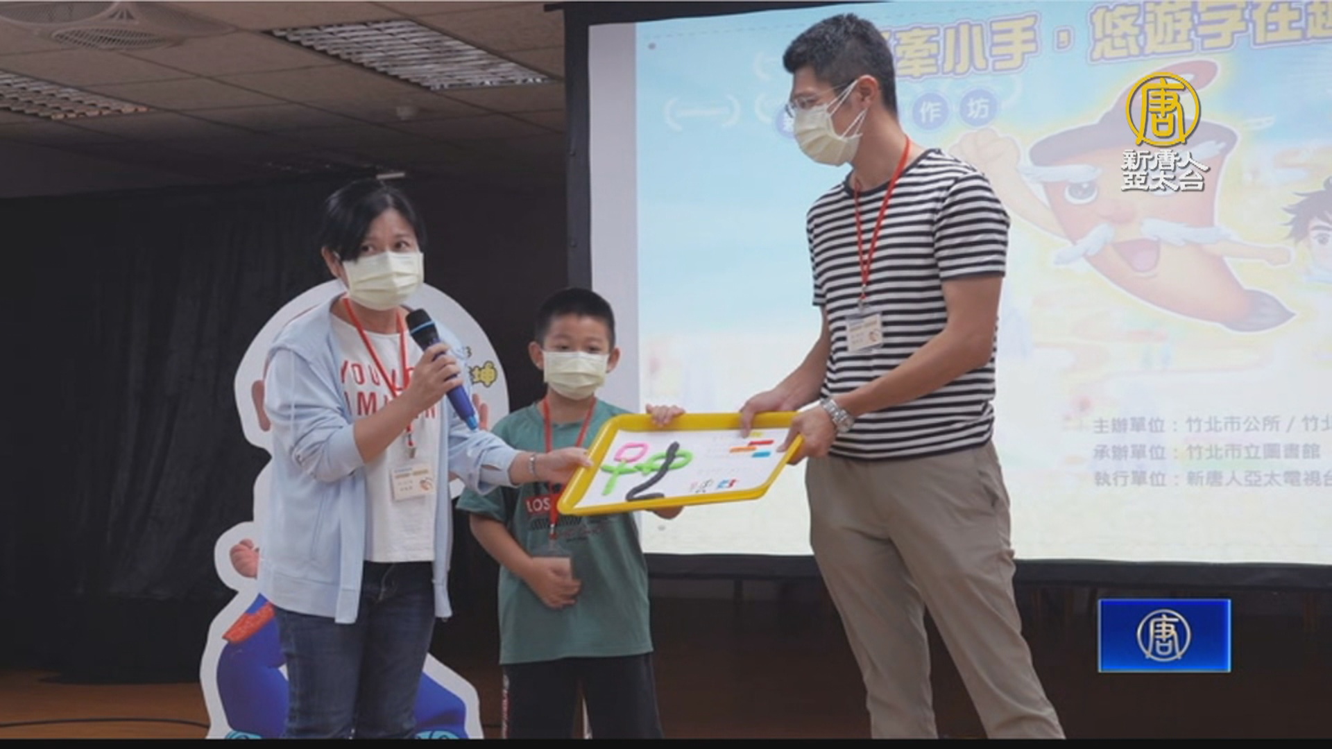 【新唐人亞太台 2022 年 09 月 20 日訊】新竹縣竹北市立圖書館,週六(9月17日)舉辦「大手牽小手,悠遊字在趣」活動,透過觀看影片、聽故事、親子共作,提升孩子的學習動機,促進親子良好關係。圖書館館長說,50組名額很快就額滿,家長報名非常踴躍,希望未來也能夠在其它社區,舉辦這樣的親子活動。