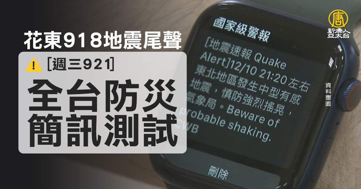 【新唐人亞太台 2022 年 09 月 20 日訊】新聞開始先來關心,918規模6.8地震後續,氣象局表示,918花東大地震已經尾聲,接下來餘震的頻率間隔會越來越長,不過這一個月內都還可能會有餘震,另外也要提醒民眾,明天就是921國家防災日,到時每個人的手機都會收到地震速報測試簡訊。