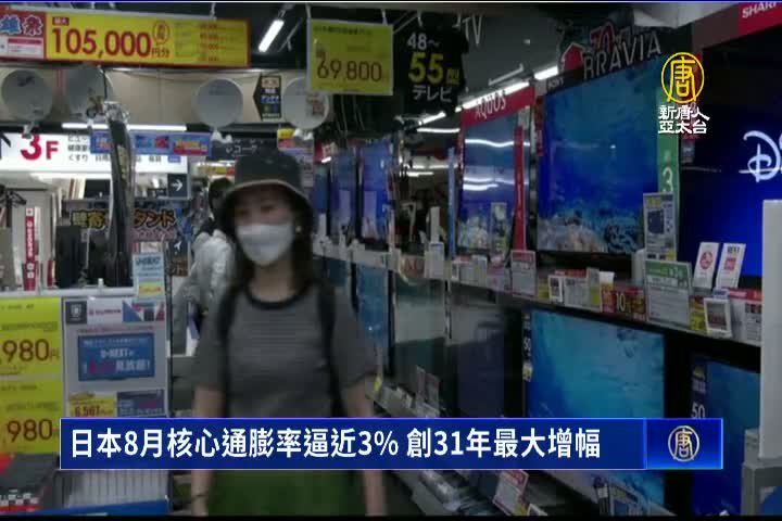 【新唐人亞太台 2022 年 09 月 20 日訊】能源價格飆漲,加上日圓走貶、推升進口物價,也日本通膨壓力持續增加,日本8月核心通膨率,較去年同月上升2.8%,逼近3%,如果扣除消費稅增稅影響不算,創下約31年來最大增幅。分析指出,儘管核心通膨率已連續5個月,超過日本央行設定的通膨目標2%,但由於薪資和消費成長仍然疲軟,日本央行不太可能在短期內升息。