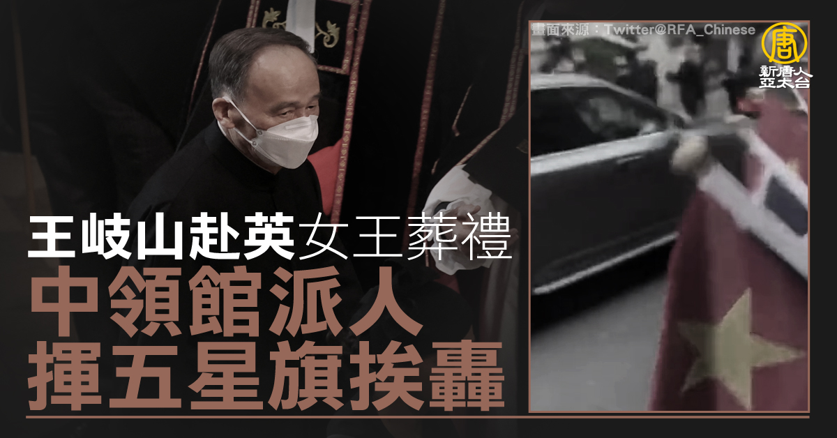 王岐山赴英女王葬禮 中領館派人揮五星旗挨轟
