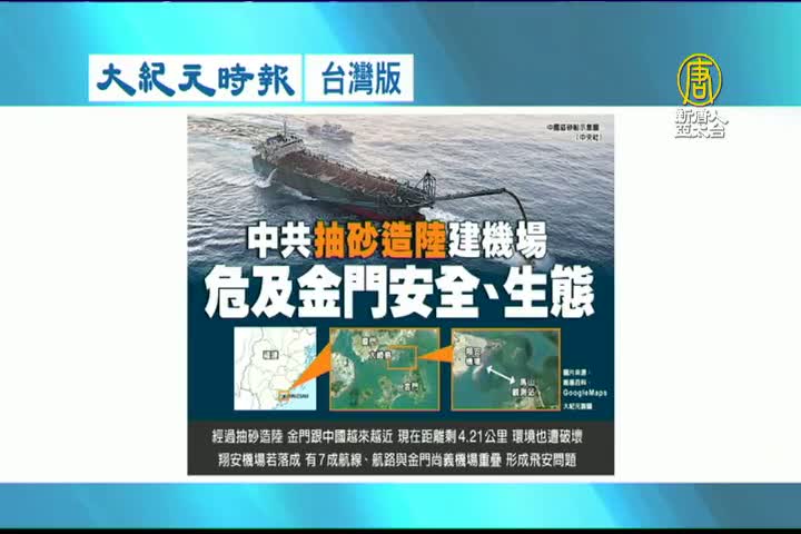 【新唐人亞太台 2022 年 09 月 22 日訊】接著看到大紀元時報台灣版報導:中共抽砂造陸建機場,危及金門安全、生態。