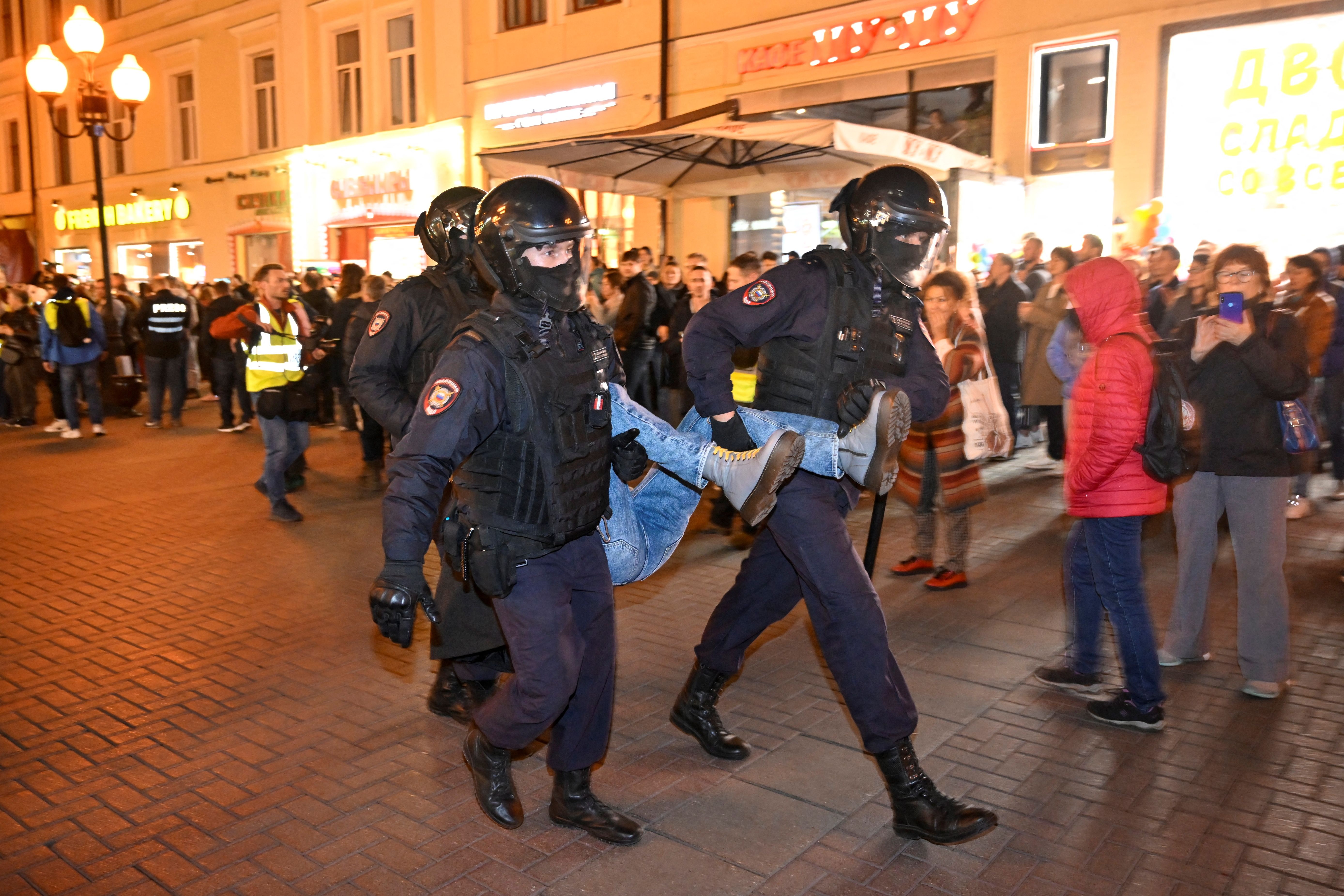 OVD-Info統計,蒲亭早上對全國發表談話後,俄羅斯各地38座城市的集會中至少有1332人遭拘留。