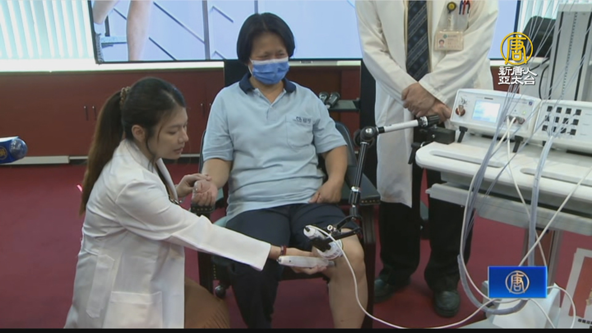 【新唐人亞太台 2022 年 09 月 23 日訊】根據衛生福利部統計,台灣民眾每5人中就有1人有膝蓋退化的問題,現在有不用開刀的新選擇了;有1名56歲的女看護,因為長期搬動病患造成右腳內側膝蓋腫脹疼痛,台中榮總傳統醫學部團隊引進奧運國手治療使用的雷射針灸治療儀,有效改善長期膝蓋疼痛之苦。