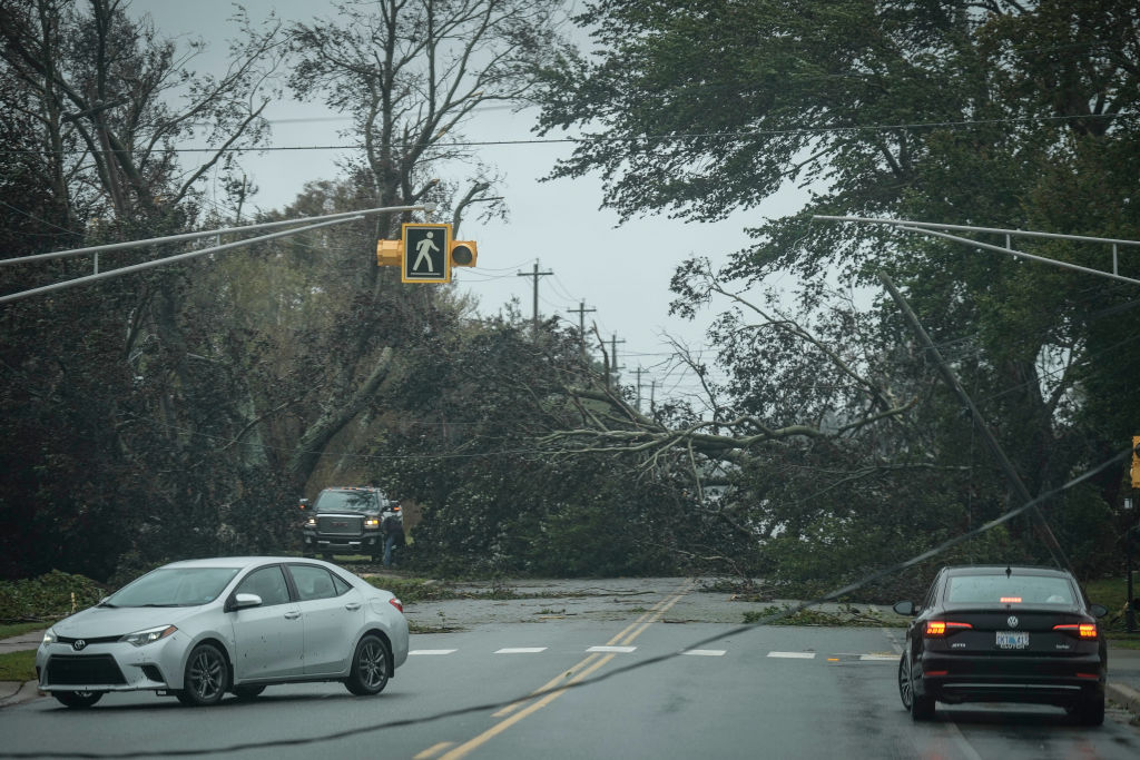 強烈風暴菲奧娜肆虐加拿大東部,挾帶颶風級風力,吹倒樹木、摧毀電線。(圖/GettyImages)