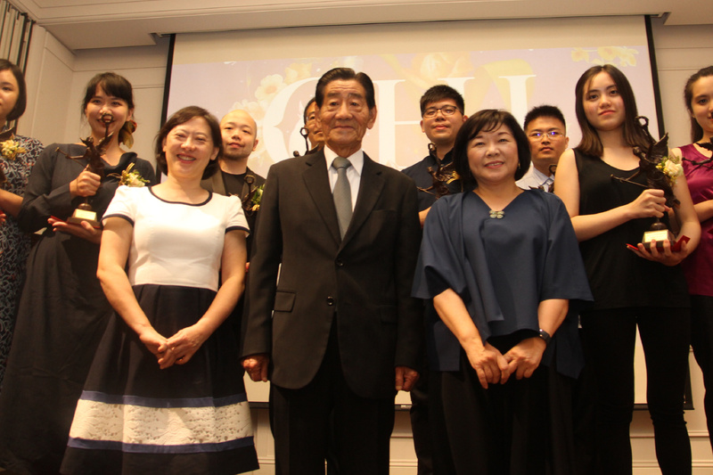 奇美集團董事長廖錦祥(圖前中)25日病逝,廖錦祥自退休後熱心藝術文化,常與女兒廖婉如(圖前左)一起出席奇美博物館活動。圖為2019奇美藝術獎頒獎典禮。(圖/中央社)