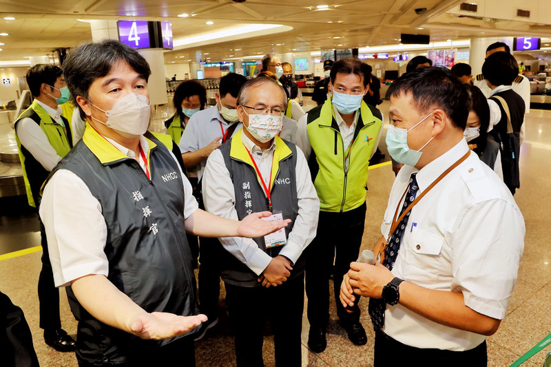 王必勝與副指揮官陳彥伯下午前往桃機視察放寬邊境管制整備情形,王必勝接受媒體聯訪表示,透過上述規劃,機組員在外站之前抱怨被關在旅館內的事都不會再發生,外國機師部分也正常入出境,跟入境者一樣管理,這樣就會均一化,不再有差別。