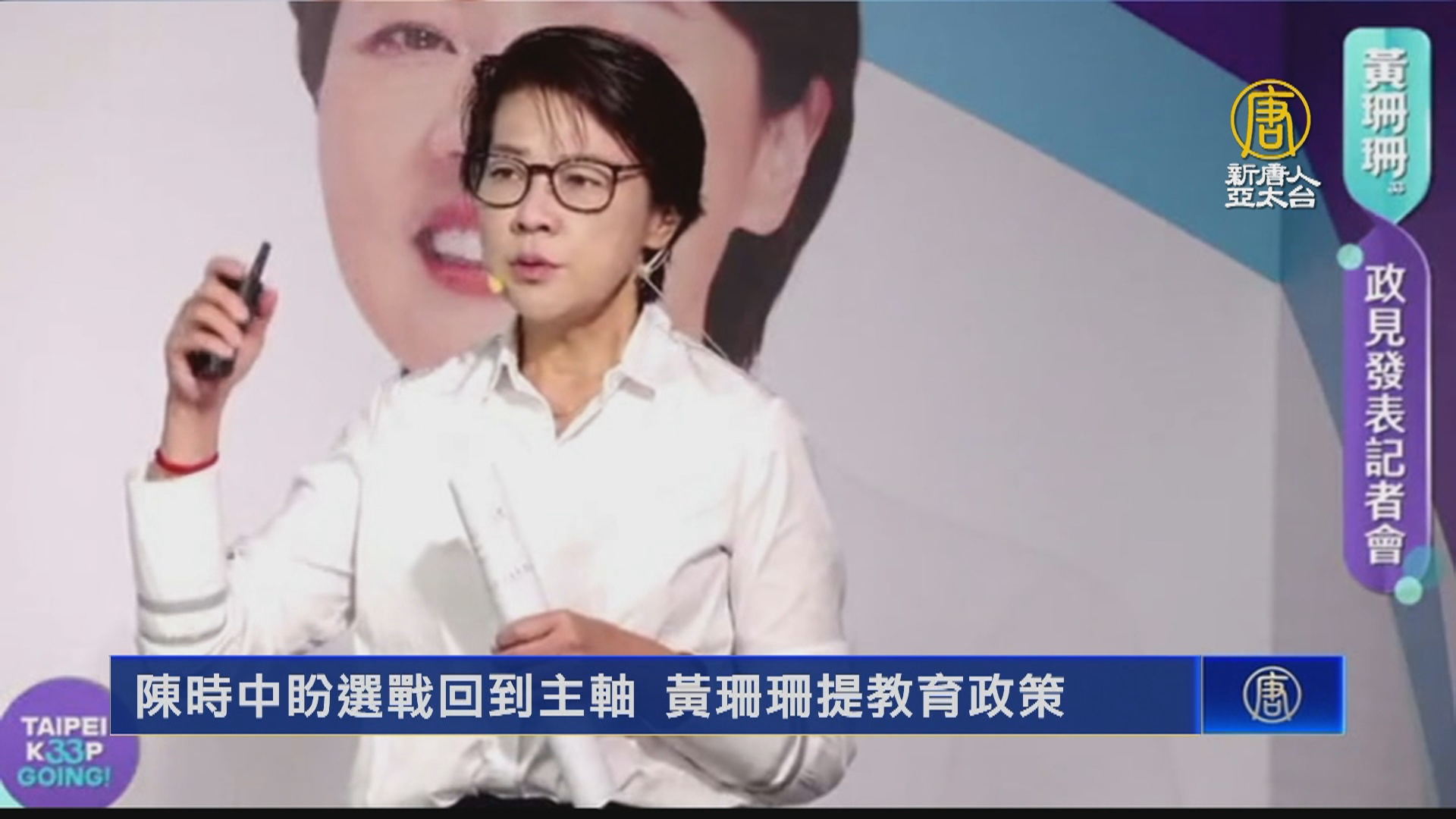【新唐人亞太台 2022 年 09 月 28 日訊】九合一選戰倒數,不到兩個月,台北市長選情,參選人陳時中、黃珊珊先後公布教育政策。黃珊珊今天舉辦前瞻教育記者會,提出包括5歲納入義務教育等,對手陳時中受訪時說,教育政策是大家要重視的,喊話蔣萬安也應該趕快提出。