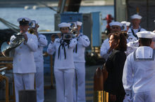 賀錦麗今天造訪位於東京近郊神奈川縣橫須賀、美國海軍在全球最大的海外據點,並發表演說。