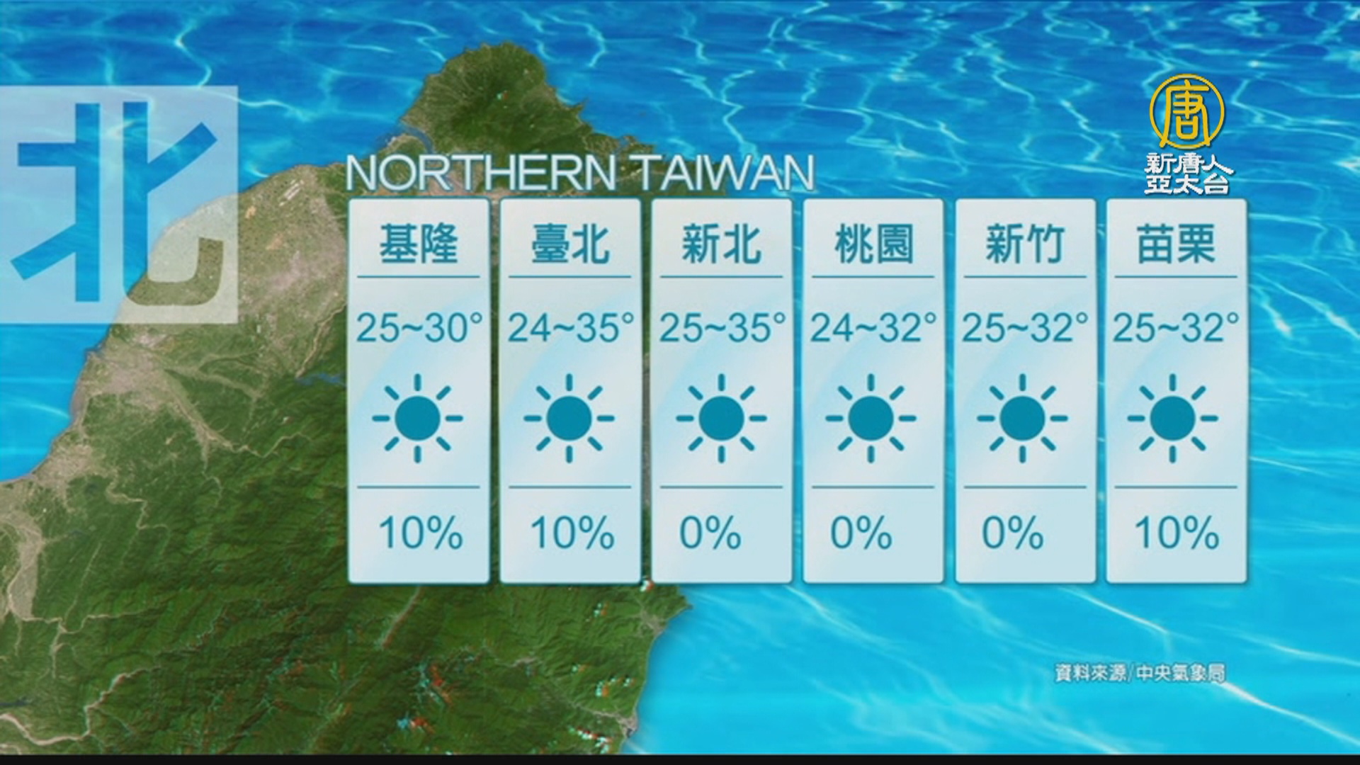 2022-09-28 09:00:56歡迎您收看9月28日的早安新唐人,我是唐潔安,先來帶您關心天氣。今天全台各地白天稍熱,紫外線強,日夜溫差最大可超過10度,提醒早出晚歸的觀眾朋友留意。另外,星期五(30日)開始水氣增多,天氣會逐漸變得不穩定。帶您一起來看到國際媒體重要訊息。