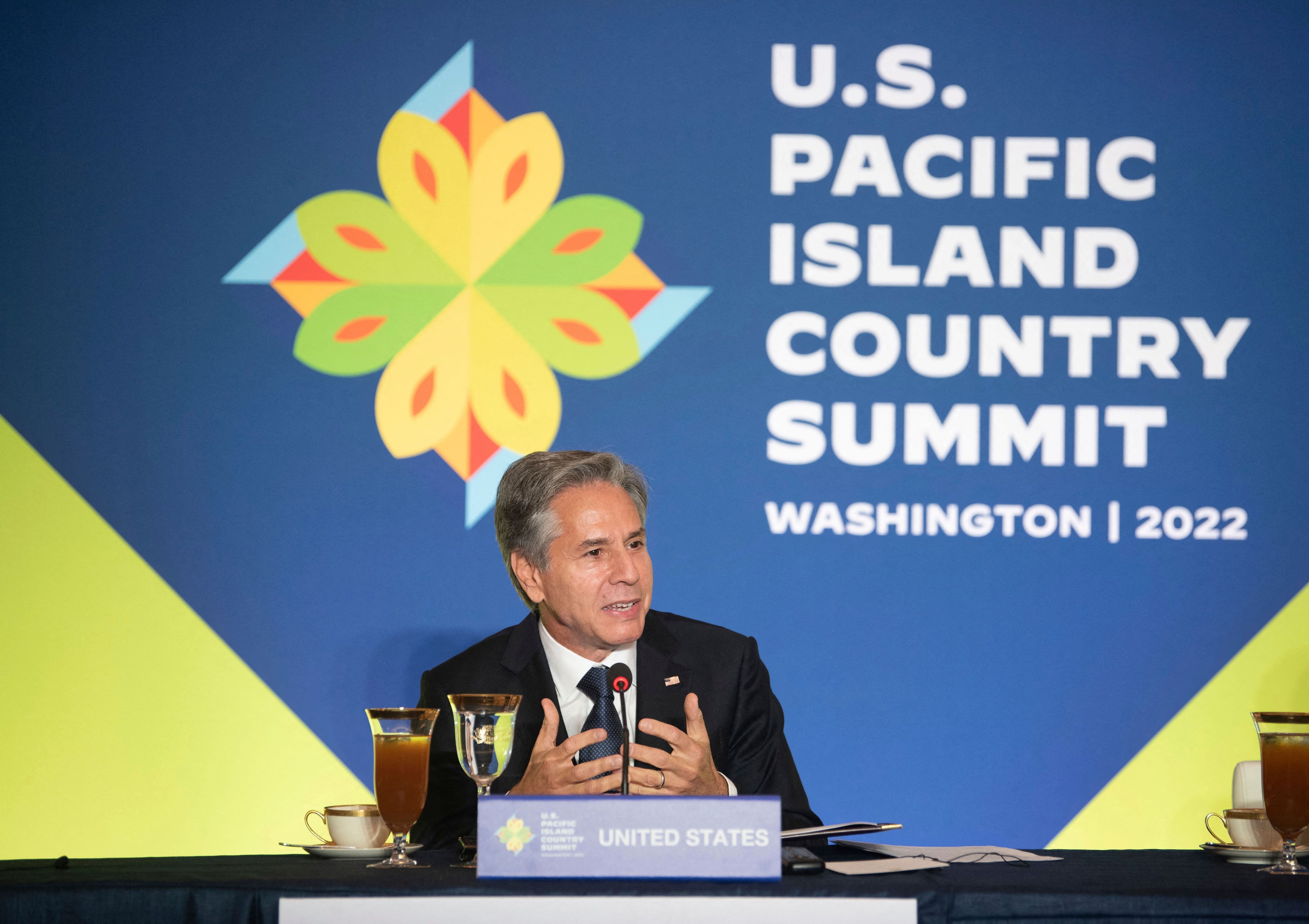 布林肯(Antony Blinken)與太平洋島國領袖們共用午餐歡迎他們,並承諾「你們可以指望美國與你們合作」。