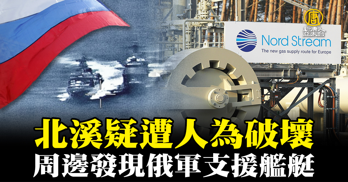 【新唐人亞太台 2022 年 09 月 29 日訊】俄羅斯向歐洲輸送天然氣的北溪一號和二號管道日前發生嚴重洩漏,歐盟與周邊幾個國家認定是人為攻擊。歐方官員26、27日觀察到事發點周邊有俄國海軍支援艦艇出現。