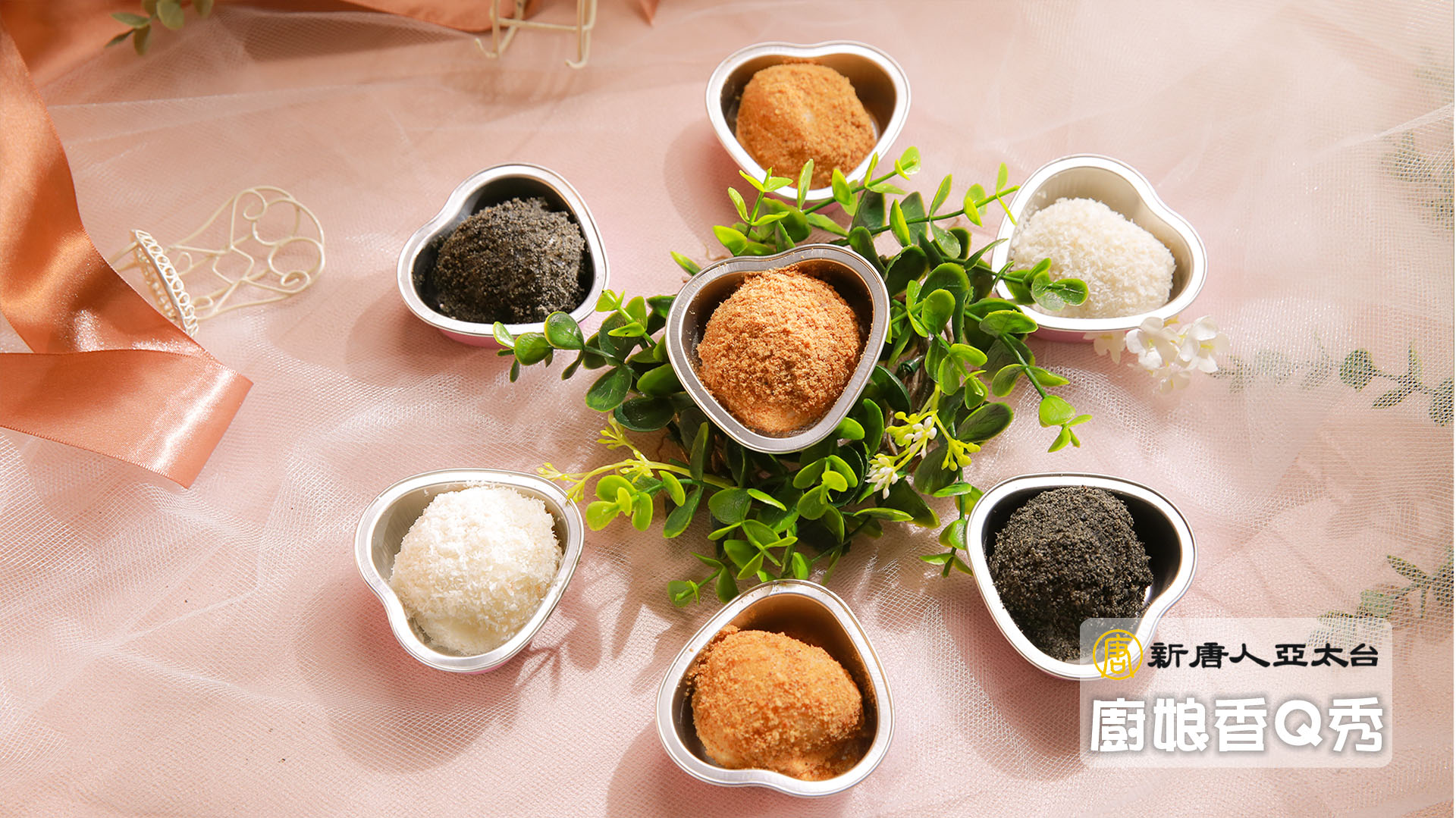 紅豆餡300~400g (@15~20g),椰子粉、花生粉、黑芝麻粉適量。