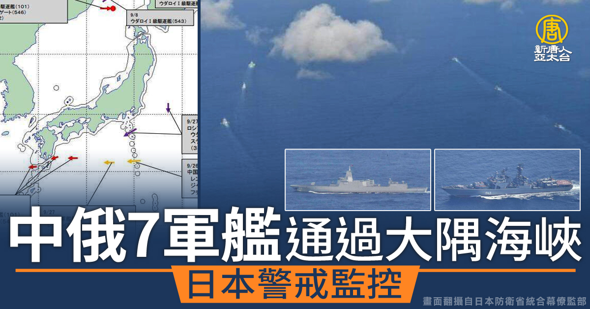 【新唐人亞太台 2022 年 09 月 30 日訊】再來看到,日本防衛省昨天表示,中共與俄羅斯海軍共7艘艦艇在28號到29號之間,結隊穿越日本鹿兒島縣的大隅海峽,朝東海航行。日本防衛省指出,中共的飛彈驅逐艦等3艘艦艇以及俄羅斯的驅逐艦等4艘艦艇,在日本海參加軍事演習後,通過北海道北部的宗谷岬,然後繞行日本列島半周。上一次中俄艦艇共同航行是去年10月,這次是第2次。日本研判,中共與俄羅斯正在加速合作。