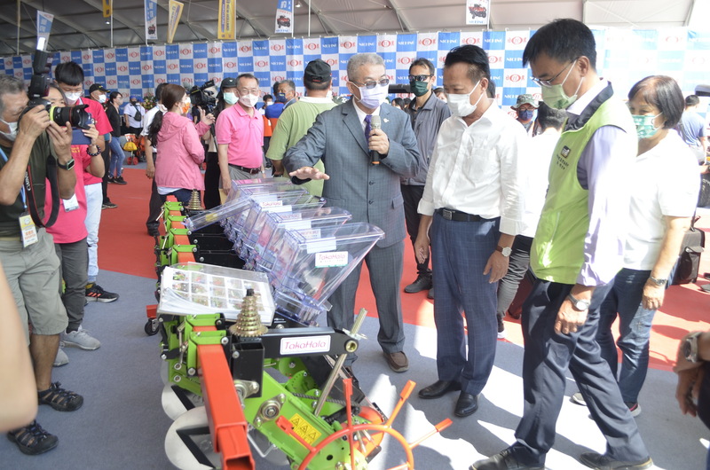 2022-10-01 22:50:55為期三天的台灣國際農業機械暨資材展,今天(1日)在嘉義縣登場,吸引國內外近500家業者參展;會中史瓦帝尼王國經貿投資處處長葉衛綺出席,與農委會主委陳吉仲、嘉義縣長翁章梁和台灣農機工業同業公會理事長楊建生等人,共同為農機展揭幕。