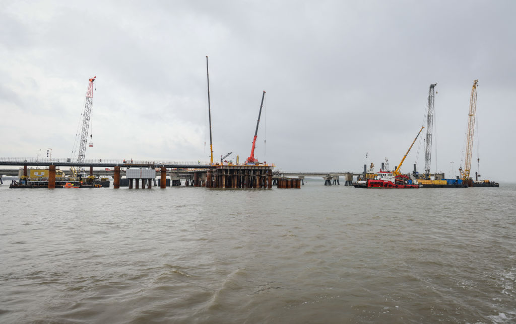 德國工人們正忙著在北海沿岸興建德國第1座液化天然氣接收站。(圖/GettyImages)