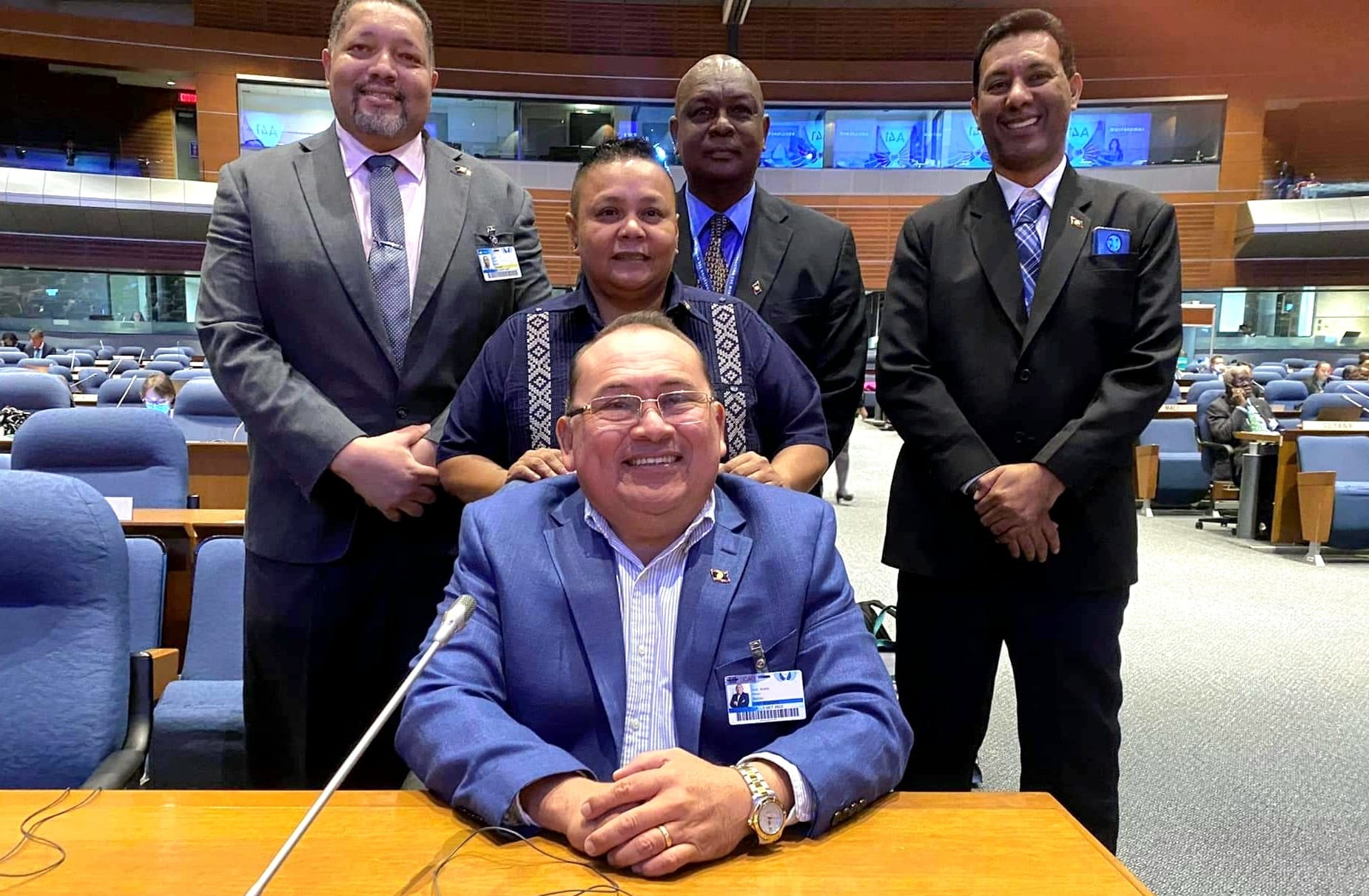 貝里斯、史瓦帝尼王國與吐瓦魯3友邦4日在國際民航組織(ICAO)年會上為台灣發聲,呼籲讓台灣有意義參與ICAO各項會議與活動。圖為貝里斯藍色經濟暨民航部部長培瑞斯(前)出席ICAO年會。(圖/翻攝自FB@Ministry of Blue Economy and Civil Aviation)