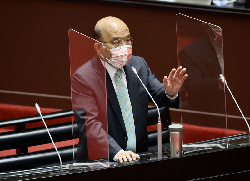 無黨籍立委黃國書7日質詢時,提到外媒報導美欲將台灣變成巨大武器庫;行政院長蘇貞昌(圖)說有足夠武器,可以防衛中共對台灣軍事威嚇,這非常適合現狀,外媒聳動標題非事實。(圖/中央社)