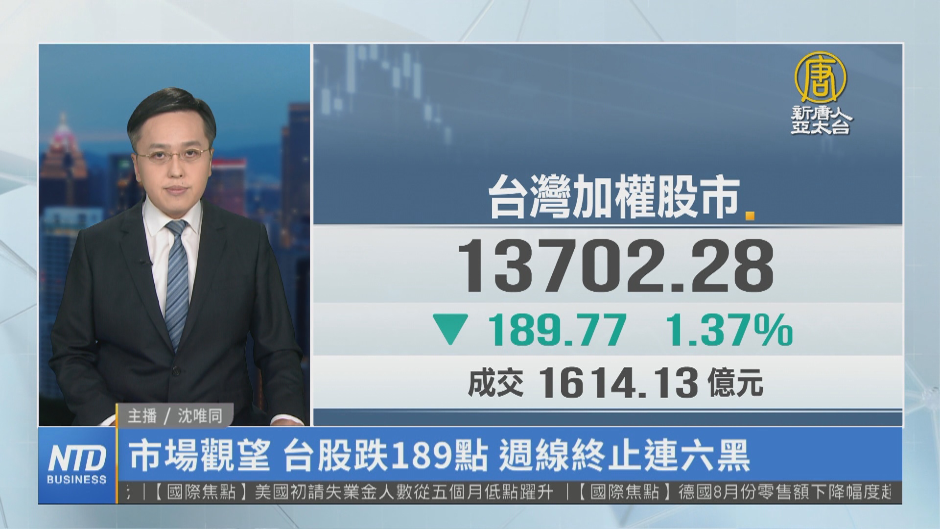 【新唐人亞太台 2022 年 10 月 07 日訊】新聞一開始帶您關心國際股市,美國即將公布眾所矚目的非農就業報告,FED官員持續傳達鷹派立場,美股四大指數周四震盪走低,道瓊下跌1.15%、標普500指數下跌1.02%。台股在經過連續三天反彈後,今天隨著美國股市回檔整理,權值股台積電領跌,大盤呈現價跌量縮,終場下跌189.77點、收在13702.28 點。本周台股合計上漲277點,周線終止連六黑格局。有分析指出,美元回落、新台幣也出現升值,政府基金挹注之下,短線上市場正面看待,不過後續還得觀察美國經濟數據,以及美股走向而定。