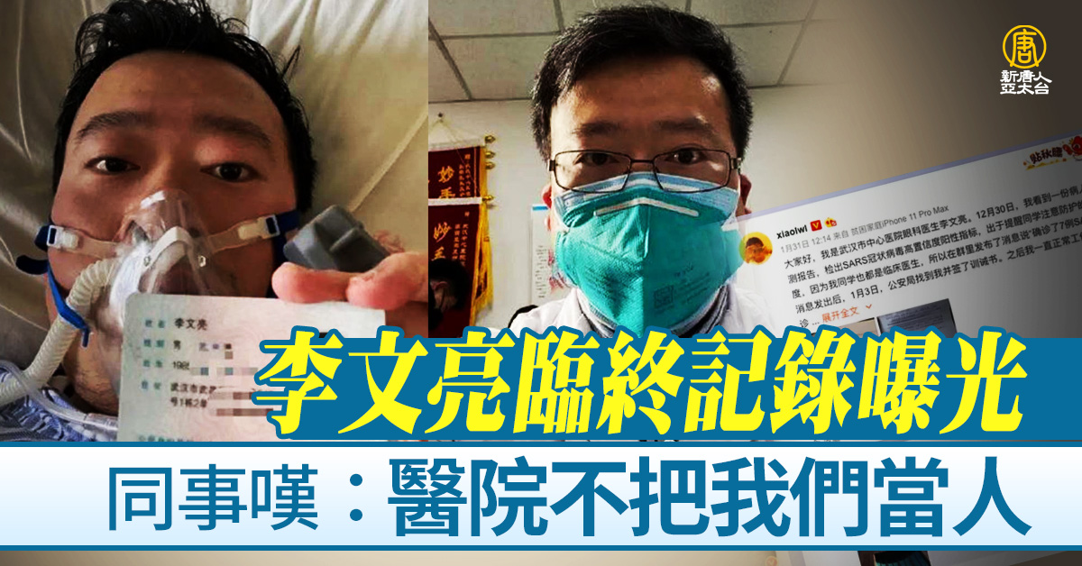 李文亮臨終記錄曝光 同事嘆:醫院不把我們當人