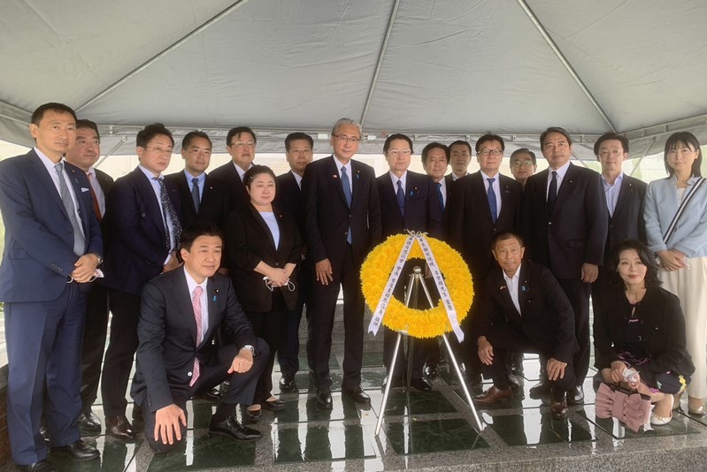 日本跨黨派參眾兩院議員組成的「中華民國國慶日本國祝賀團」9日赴五指山國軍示範公墓特勳區,向前總統李登輝致敬。(圖/李登輝基金會提供)