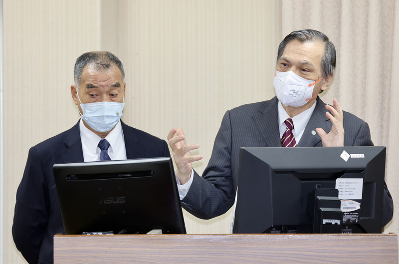 國防部、國家安全局12日在立法院外交及國防委員會分別專案報告「海軍新一代輕型巡防艦建案規劃」、 「台海最新情勢分析」,國防部長邱國正(圖左)、國安局長陳明通(圖右)接受質詢。(圖/中央社)