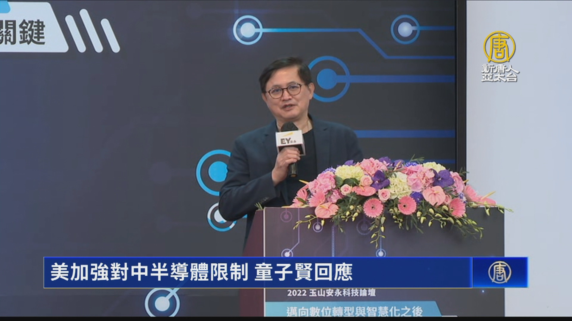 【新唐人亞太台 2022 年 10 月 12 日訊】美國持續圍堵中國半導體產業,祭出近10年來最大的出口限制。和碩董事長童子賢認為,這是美中貿易戰的延長版,整個布局更為細膩,並表示台灣企業要小心面對。