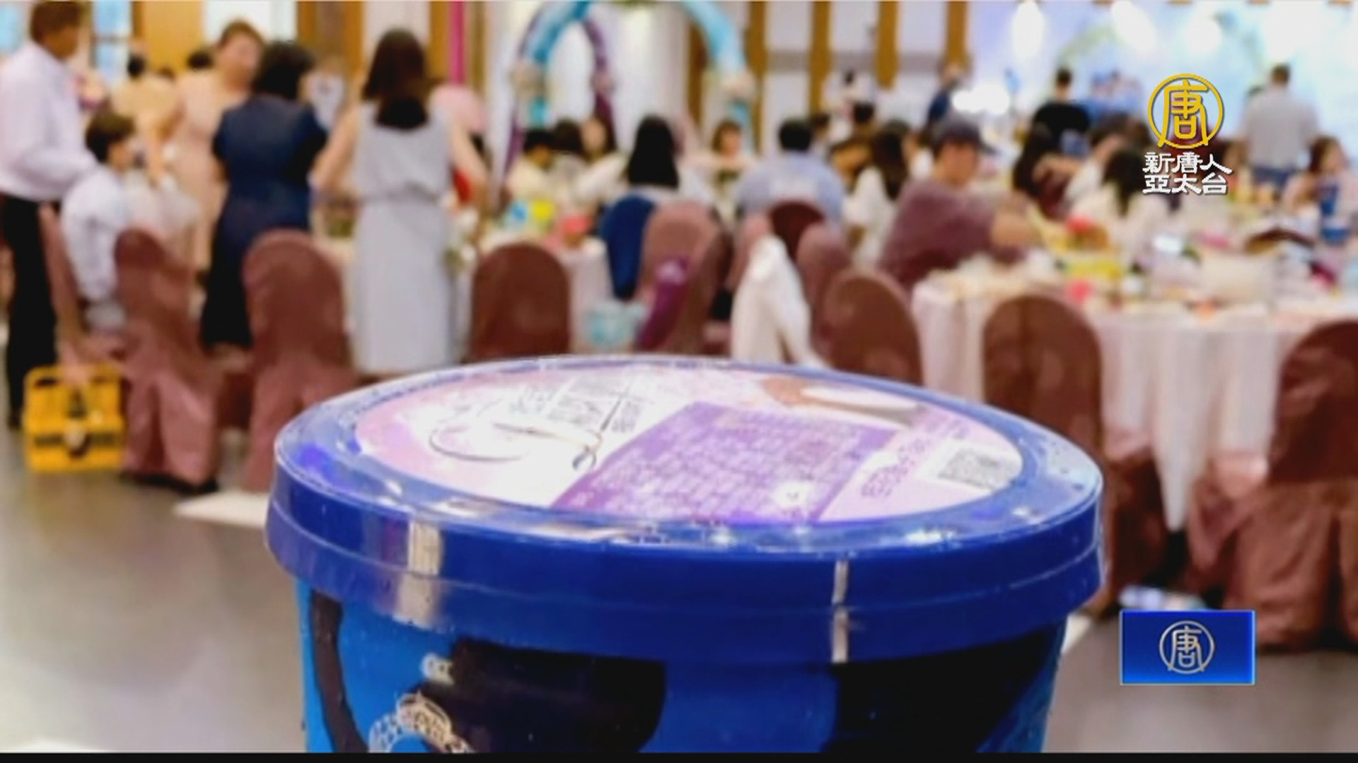 【新唐人亞太台 2022 年 10 月 13 日訊】結婚喜宴辦桌,最後一道都會端上水果甜點,但送冰淇淋不稀奇,最近就有民眾拍下,在南部參加辦桌,送上來的是整桶的冰淇淋,而且整桌一人一桶,民眾說很霸氣,就是希望最後一道菜要給客人留下深刻印象。