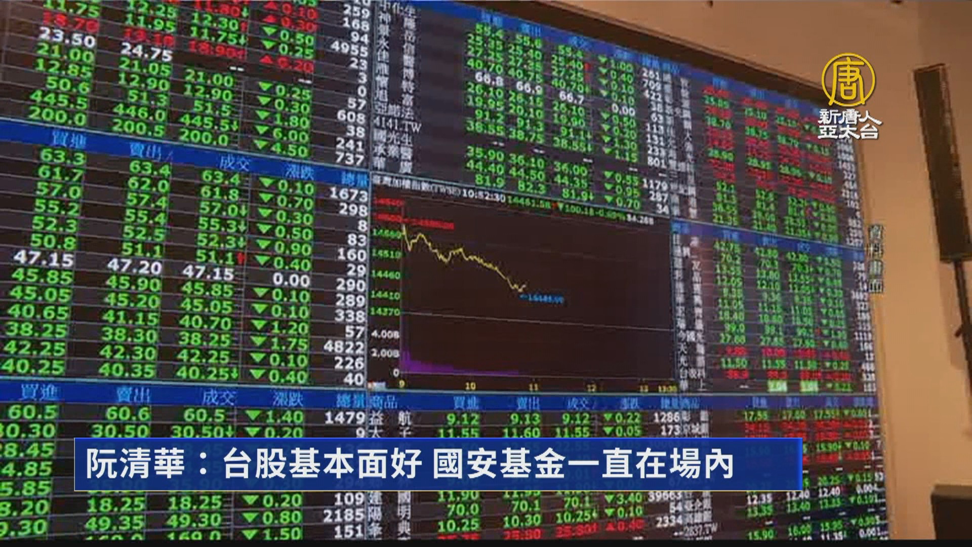 【新唐人亞太台 2022 年 10 月 13 日訊】台股上午開低走低,國安基金操盤手、財政部次長阮清華,立法院受訪表示,國安基金都是一直在積極進場,也一直都在場內。阮清華強調,台灣經濟基本面非常穩健,雖然難免會受到國際經濟情勢的影響,現在台股本益比已經低於10倍、殖利率是全球最高,對市場後續發展保持樂觀態度。國安基金這一波截至9月底,進場護盤112億元,阮清華也提及台積電占台股權值大,穩定台積電是非常重要。