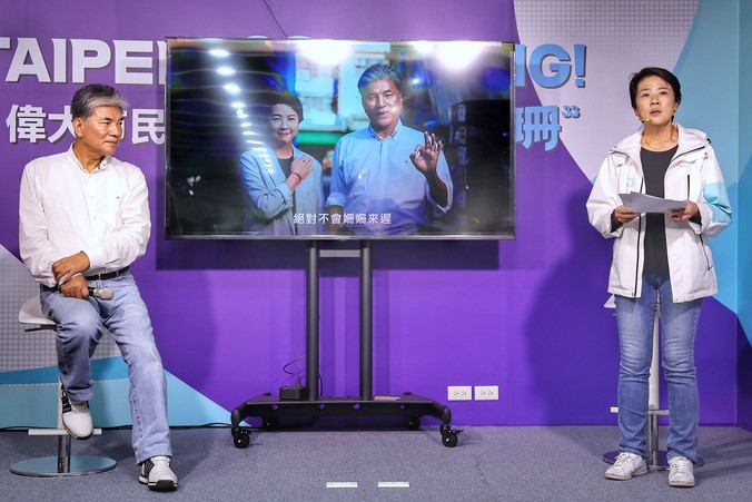 無黨籍台北市長參選人黃珊珊(圖右)14日在競選總部發表新競選短片,並表示將推出公辦都更3.3計畫。圖左為前內政部長、黃珊珊競選團隊政策總顧問李鴻源。(圖/中央社)