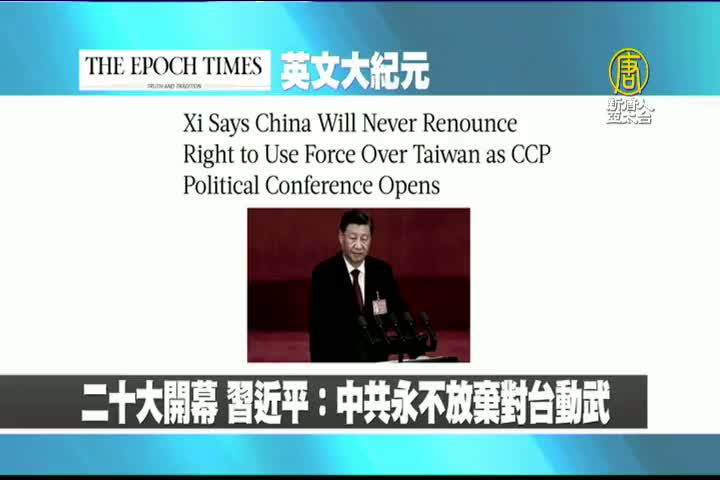 【新唐人亞太台 2022 年 10 月 17 日訊】首先來看到美國大紀元英文版報導:習近平在二十大開幕式會上稱,中共永遠不會放棄對台灣使用武力。先前中共的侵台舉動已加劇國際社會的批評不滿。