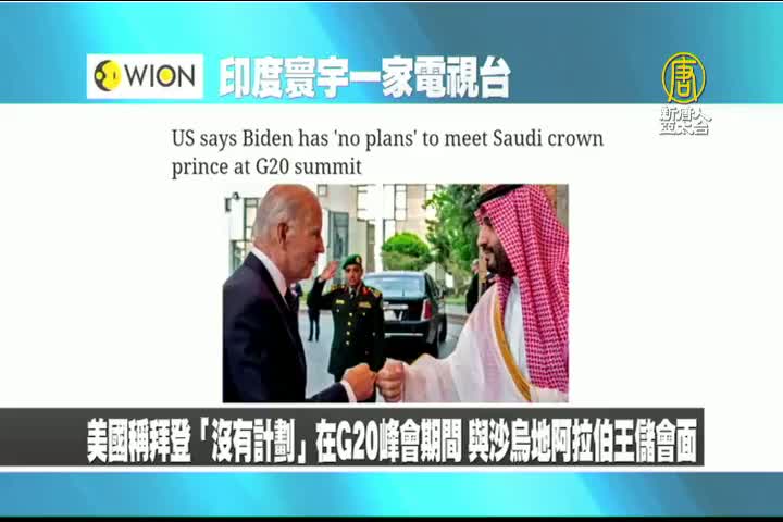 【新唐人亞太台 2022 年 10 月 17 日訊】最後是印度寰宇一家電視台報導:美國稱拜登「沒有計劃」在G20峰會期間,與沙烏地阿拉伯王儲會面。
