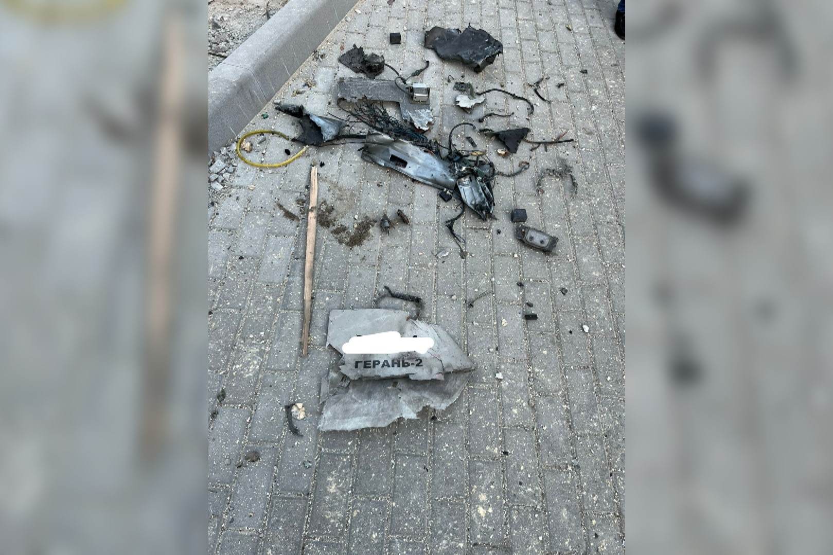 烏克蘭首都基輔市中心17日早上發生1週來第2起爆炸,基輔市市長克里契科表示,當地有數棟民宅毀損。圖為17日一架襲擊基輔的無人機殘骸。(圖/翻攝自推特@Vitaliy_Klychko)