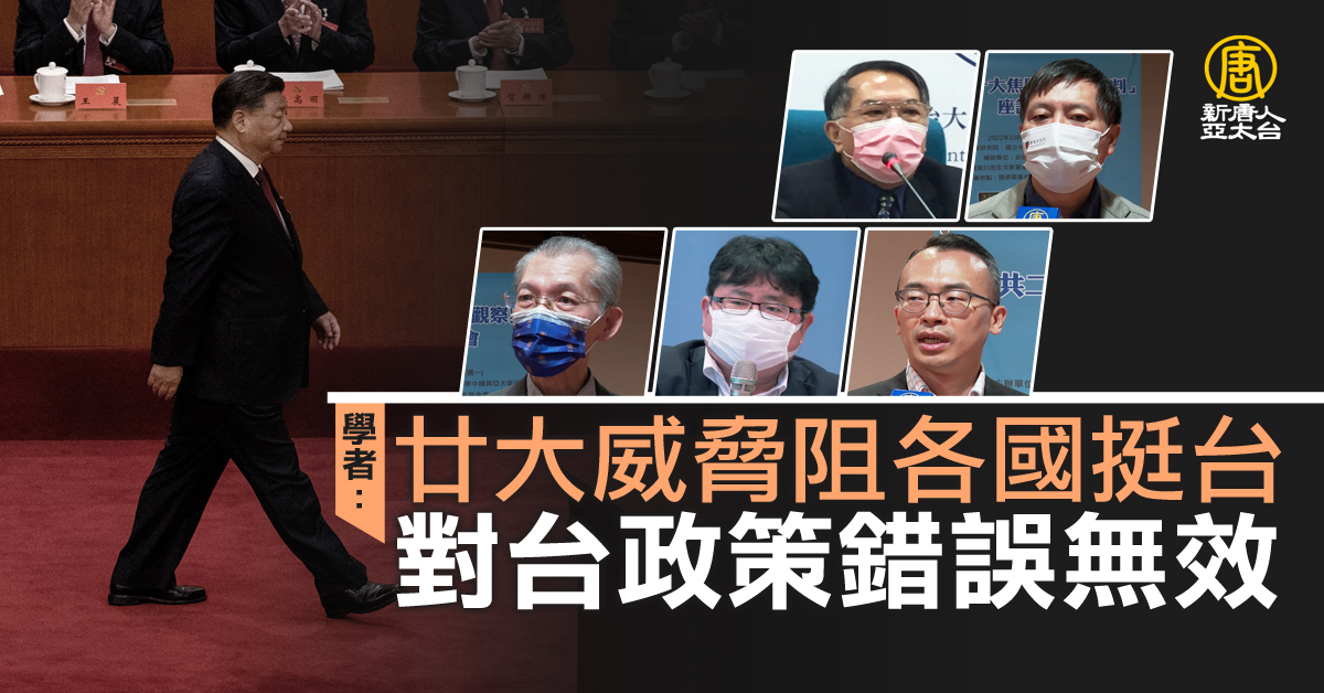 【新唐人亞太台 2022 年 10 月 17 日訊】國際關切台海安全,習近平在中共二十大的報告涉及台灣的談話,各界紛紛解讀。台北17日有兩場學界座談。學者分析,中共報告基本是老調重彈、也顯示對台政策錯誤又無效,這次主要釋放訊息,在威嚇西方及日本等民主國家,阻撓各國對台灣的支持。