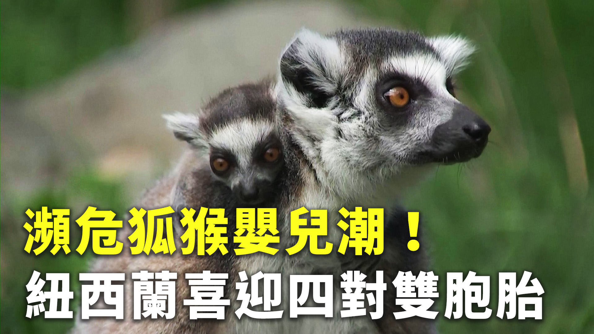 【新唐人亞太台 2022 年 10 月 22 日訊】動畫電影《馬達加斯加》裡的環尾狐猴,令人印象深刻,但野生數量已經下降到被列為瀕危物種。最近三個月,紐西蘭的威靈頓動物園喜迎嬰兒潮,四隻狐猴晉升新手媽媽,一共產下四對雙胞胎。