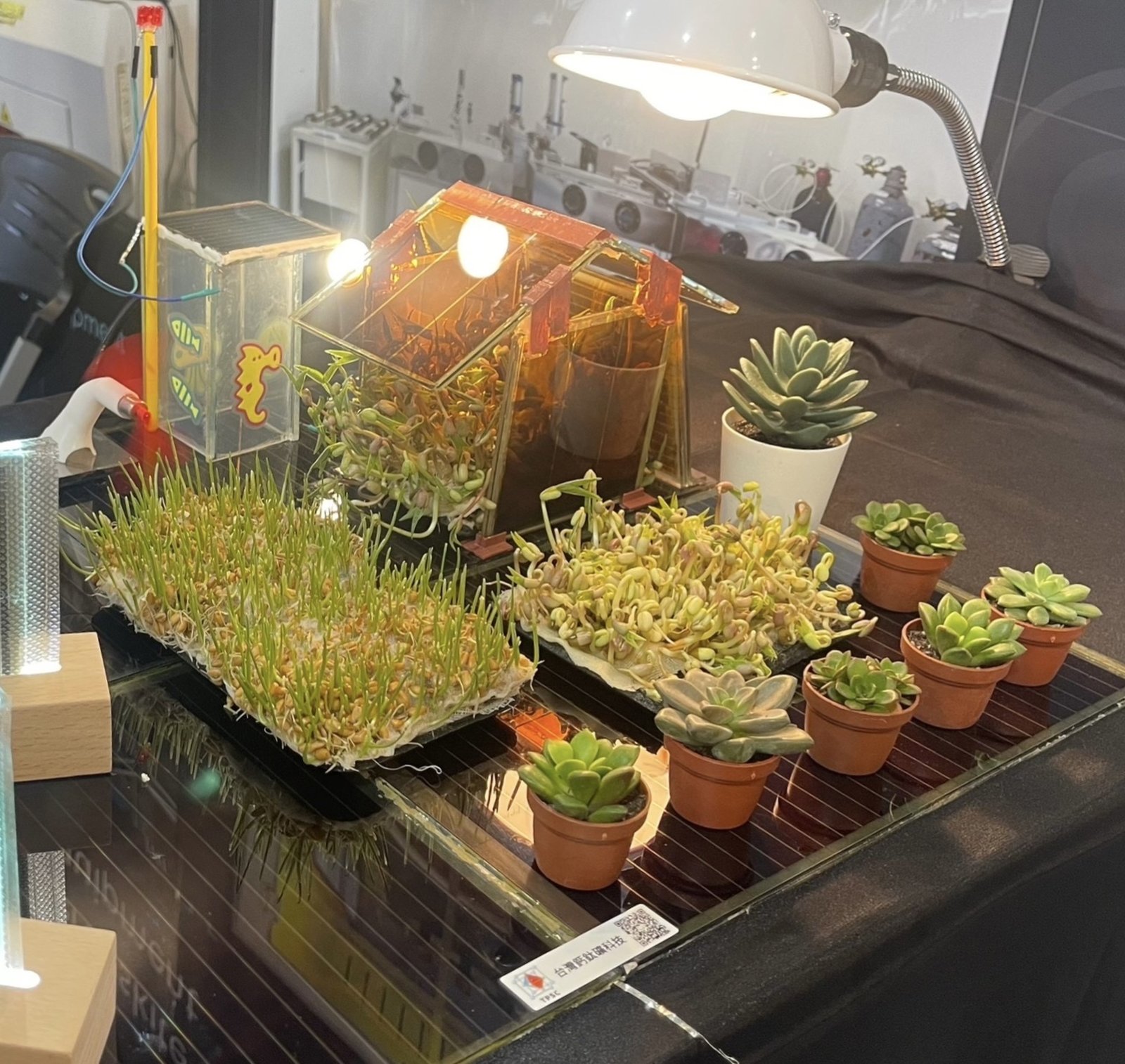台灣鈣鈦礦科技展出A4尺寸鈣鈦礦太陽能電池,並將其量產設計產線命名為『水星一號線』。(圖/台灣鈣鈦礦科技提供)
