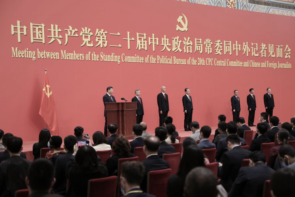 中共20屆一中全會23日選出新一屆7名政治局常委,排名第1的習近平一如預期三度擔任總書記。其餘6人依序為李強、趙樂際、王滬寧、蔡奇、丁薛祥、李希。 圖由左到右為習近平、李希、蔡奇、趙樂際、李強、王滬寧及丁薛祥。(圖/GettyImages)