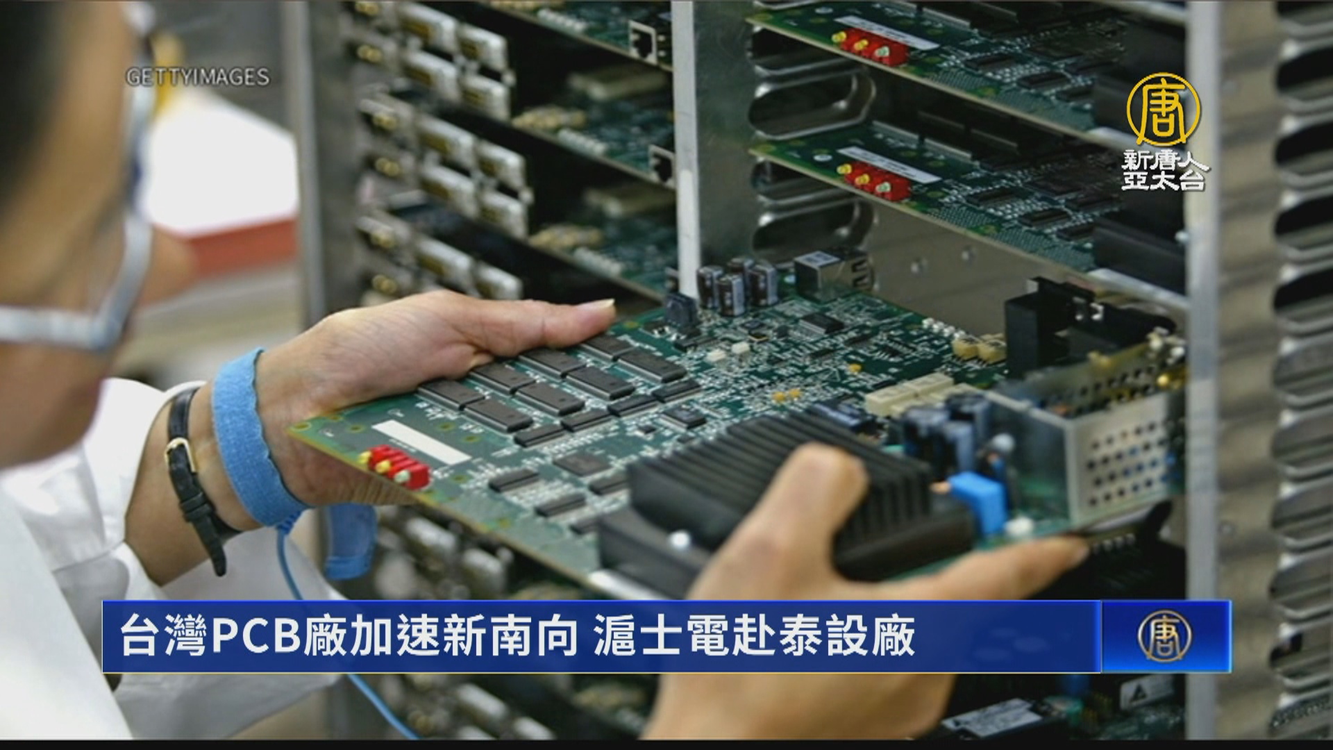 【新唐人亞太台 2022 年 10 月 24 日訊】在美中貿易戰與中共清零政策影響下,台商PCB廠加速新南向布局,業界傳出,在中國上市掛牌的楠梓電關係企業滬士電,將前往泰國投資設廠,金額將高達2.8億美元,大約新台幣89.8億元,預計2025年投產。而滬士電的設廠計畫,是今年繼台虹、定穎等PCB相關產業後,確定在泰國投資的案例,其他台灣PCB相關產業包括台郡、聯茂和台光電也陸續提出,前往東南亞的投資規劃。