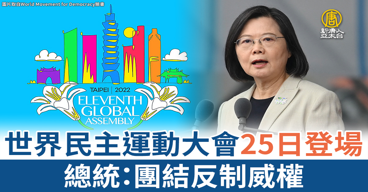 世界民主運動大會25日登場 蔡總統:結盟反制威權