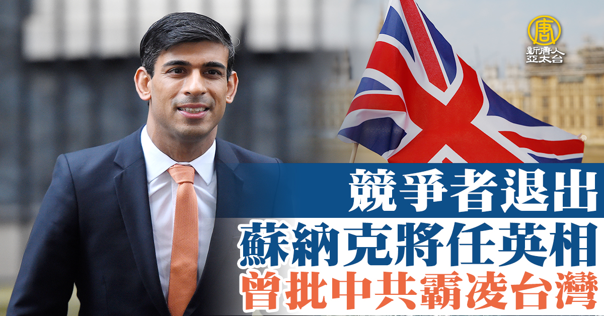 競爭者退出 蘇納克將任英相 曾批中共霸凌台灣