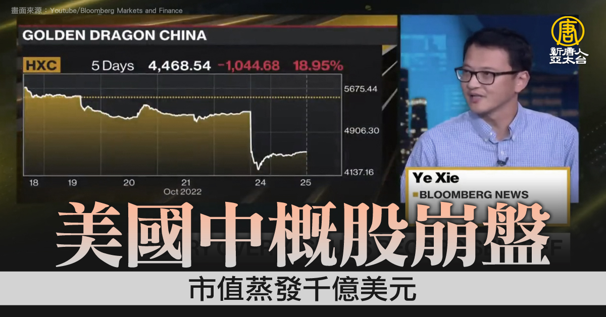【新唐人亞太台 2022 年 10 月 25 日訊】中共新領導班子亮相,不過外界持續看壞中國經濟,週一,中概股 ADR 慘遭拋售,納斯達克金龍中國指數崩跌近15%, 在美中概股市值蒸發超過千億美元。