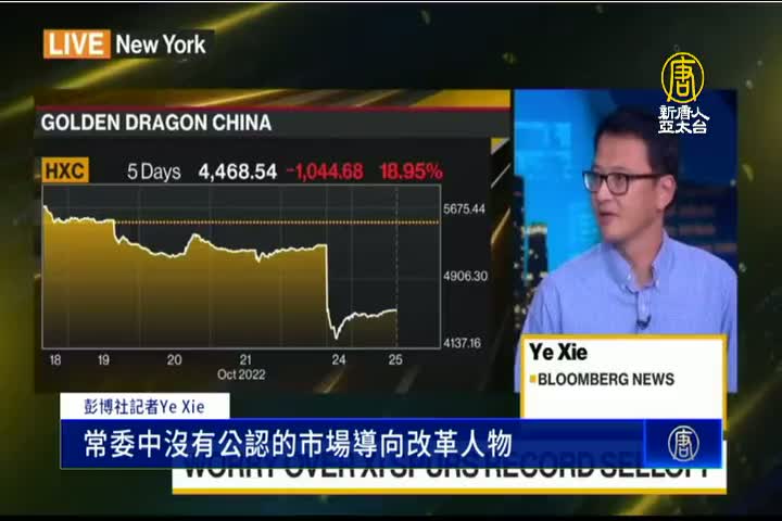 彭博社記者Ye Xie:「我認為比較主要的原因之一,是由於投資者非常擔憂,常委中沒有公認的市場導向改革人物。像汪洋、李克強這樣的官員,他們都被排除在常委名單之外。因此,投資者普遍擔憂中共當局未來5年、10年的發展方向。」