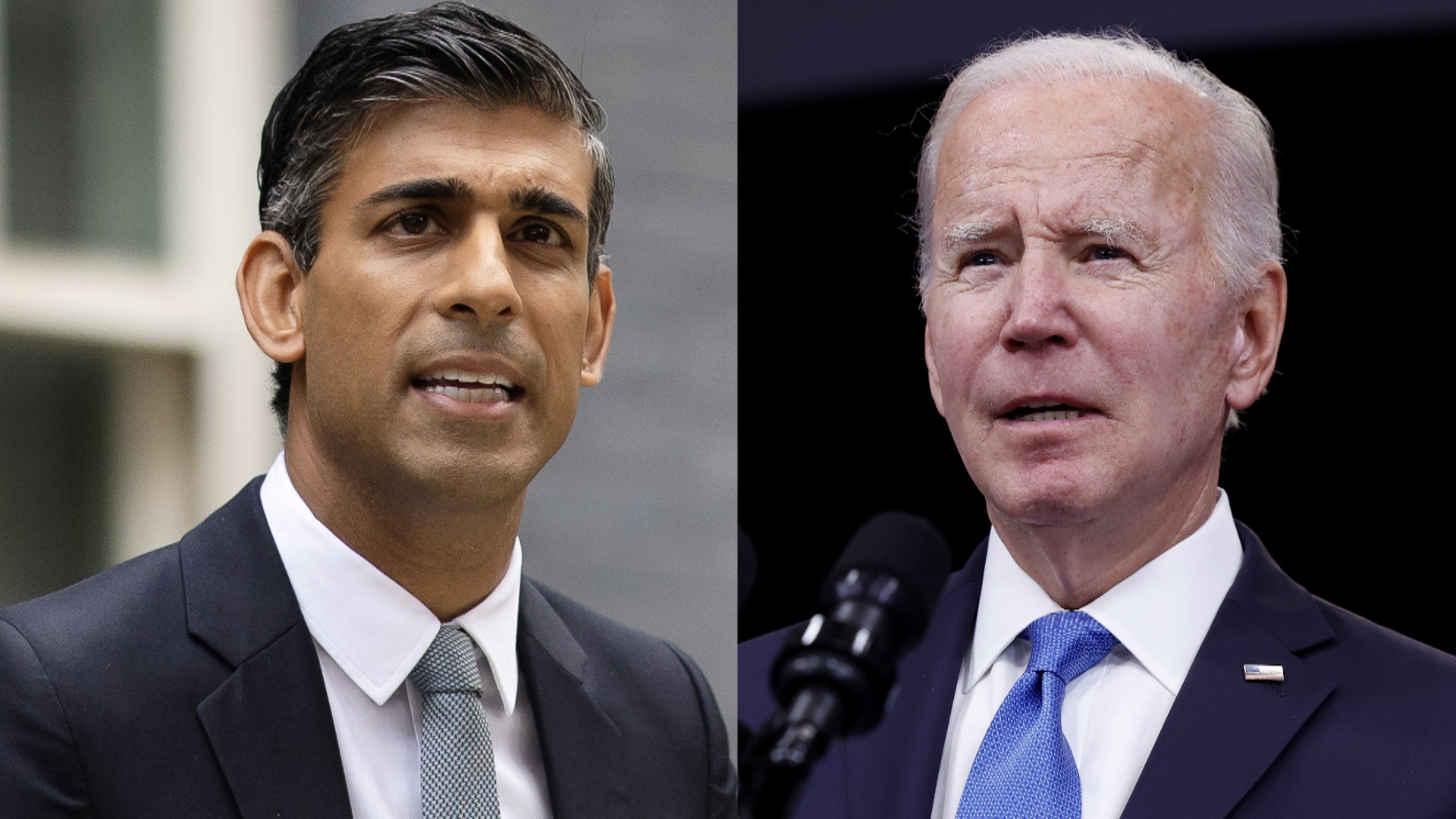 美國總統拜登(右)25日與甫上任的英國首相蘇納克(左)通話,兩人重申美英的特殊關係,並討論支持烏克蘭及追究俄羅斯侵略行為責任、因應中共挑戰的重要性。資料照。(圖/GettyImages)